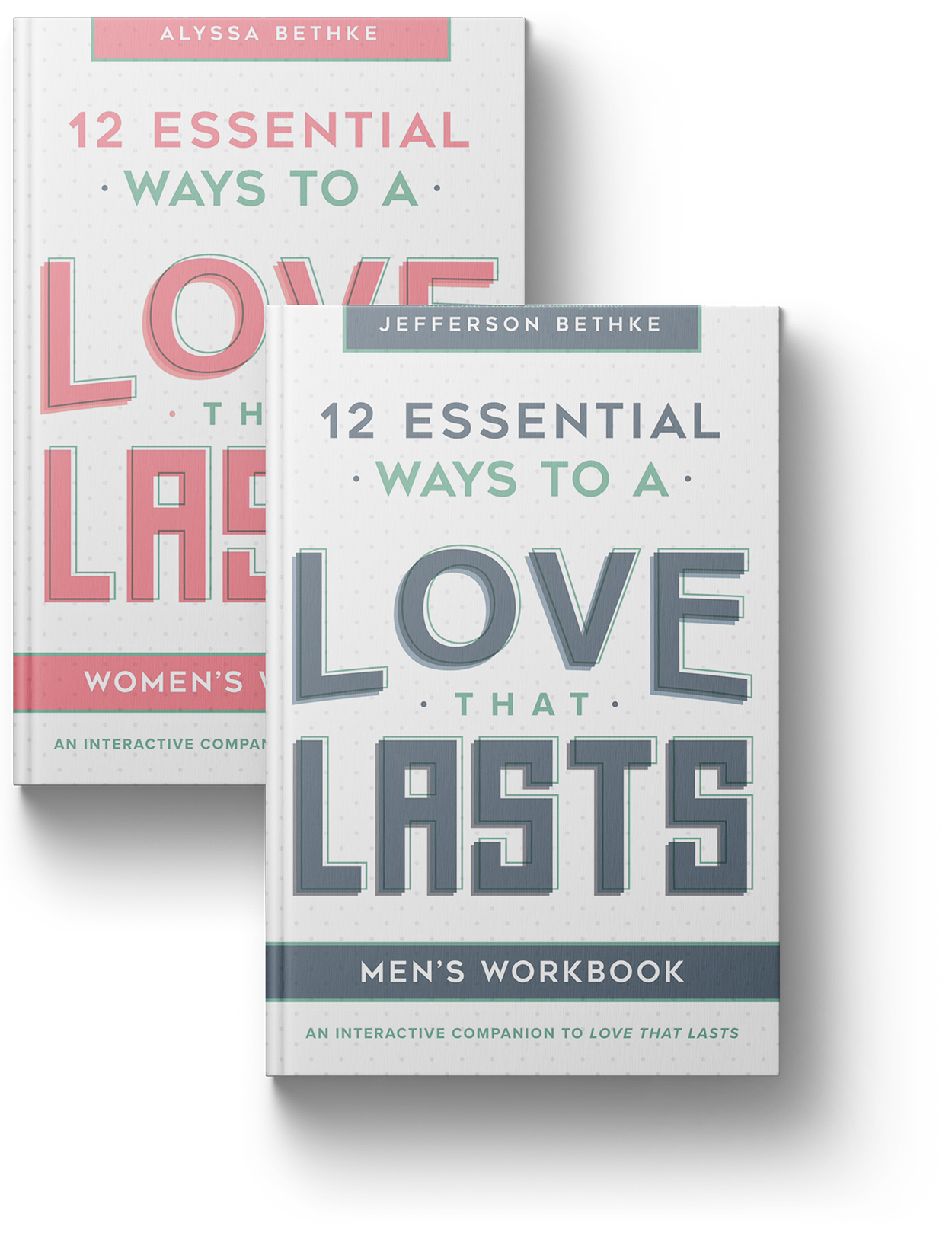 In 12 Essential Ways To a Love That Lasts, we will guide you through a 12-week relationship journey that covers the 12 essential ways to have a Love That Lasts. Alyssa wrote a guidebook for women and Jeff for men. In each guidebook, there is space for personal writing and reflection and conversation questions for you to discuss with one another afterward.